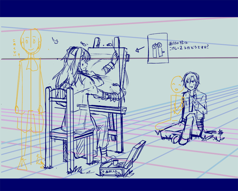 (画像クリックで次) 構想は浅葱さんの案でした。 一番最初の構想絵は別にあったのですが、とりあえずここからスタートしてみます。 パースとかイーゼルとか難しそうなものは相変わらず全て浅葱さんに丸投げです(…) よく途中で愛想尽かされなかったなと思います(真顔)
